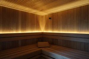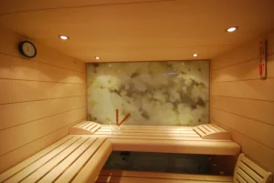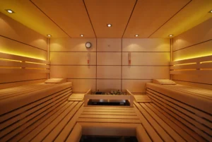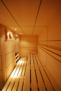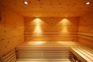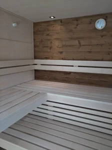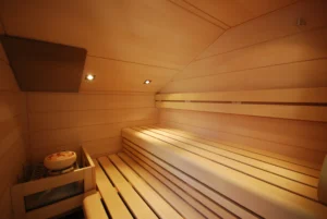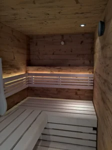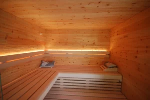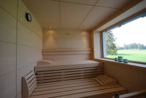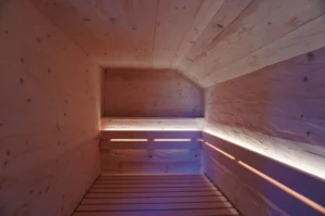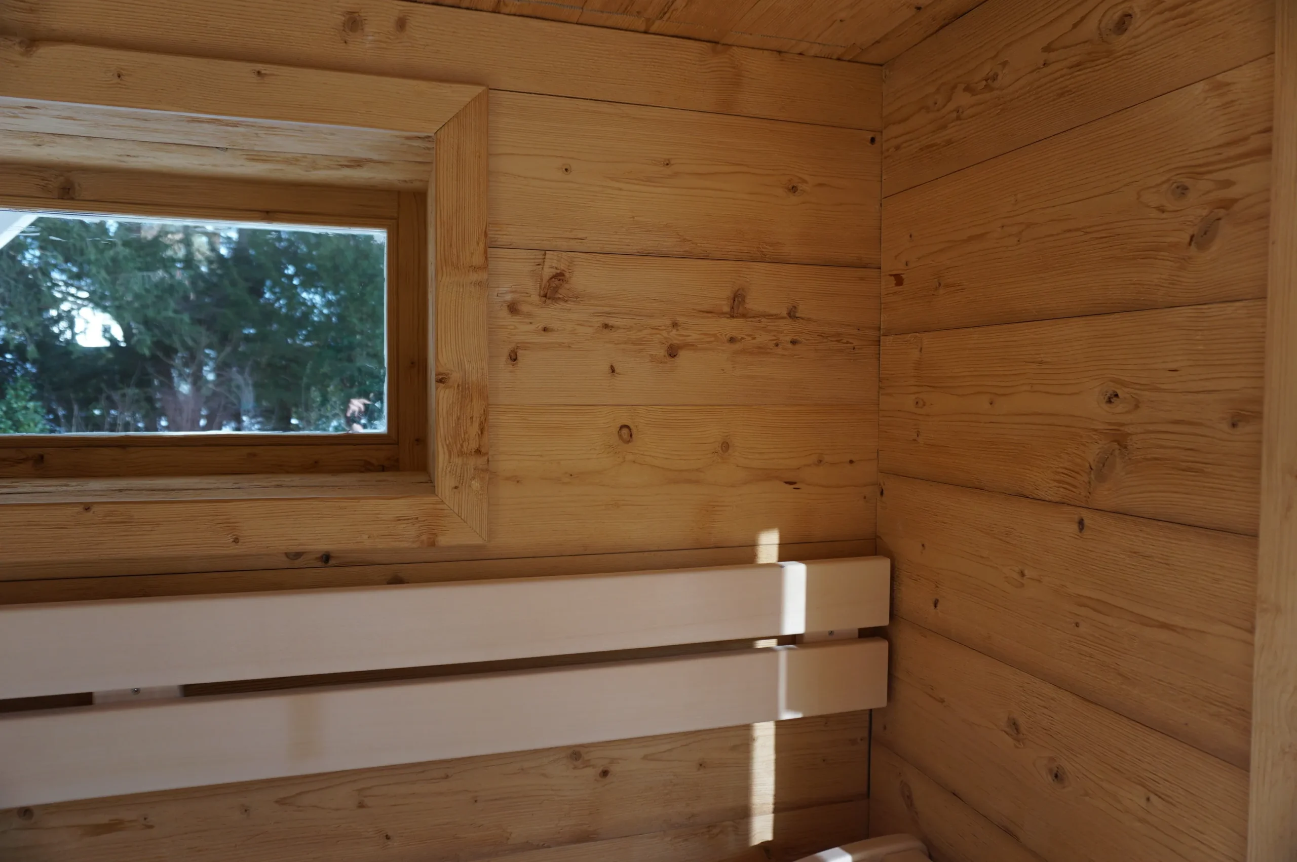 „Raum aus Holz“ ist die wörtliche Übersetzung aus dem Finnischen für das Wort SAUNA. Das einzigartig unverwechselbare Klima in einer Saunakabine entsteht durch die hohe Speicherfähigkeit von Wärme in den Wänden aus Holz.