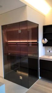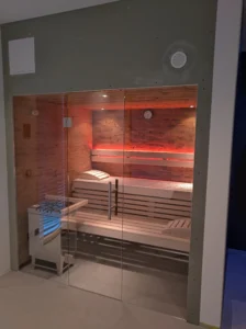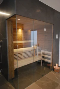Der Werkstoff Glas eignet sich wunderbar für gestalterische und optische Anreize im Saunabau. Glas mit seiner Transparenz und Leichtigkeit bietet viele Möglichkeiten bei der Verwirklichung vom modernen Home-Spa.  Immer mehr Saunakabinen sollen mit kompletten Ganzglas-Wandelementen ausgestattet werden. Der edlen Optik wegen wird dabei immer häufiger auf das Wesentliche einer Saunakabine verzichtet: Die milde Wärmeabgabe der Saunawände aus Holz auf den Saunabadenden.