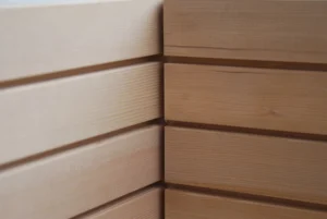 Vollflächige Verkleidung der Wand- und Deckenelemente im unterschiedlichsten Design. Ob als 20 cm breite Paneele mit Nut- und Feder oder Platten bis zu 36 cm Breite  – wir erfüllen Ihre Wünsche. Natürlich auch mit vielen verschiedenen Echtholzfurnieren (Ahorn, Akazie, Amerikanischer Nussbaum, Birke, Erle, Zirbe, Hemlock-Tanne, Lärche etc.).