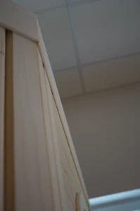 Für unsere Massiv-Saunen in Blockrahmenbauweise verwenden wir für die Wände und, sehr wichtig, auch für die Decken ausschließlich 58 mm starke Blockbohlen aus ausgesuchter Nordischer Fichte. Eine Konterprofilierung der Längs- und Querhölzer in speziellen Nut- und Federsystem geben lebenslange Stabilität und verleihen der Kabine ihre charakteristische Optik. Sie garantiert zum einen, dass die Sauna von Anfang an dauerhaft absolut verwindungsfrei ist, und zum anderen, dass beim Einbau kein Millimeter Platz verschenkt werden muss.