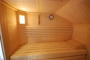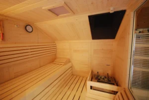 Apropos Platz:  Jede Massivholzsauna von uns wird nach individuellen Kundenwünschen einzeln gefertigt. Alle räumlichen Gegebenheiten wie z.B. Dachschrägen können somit berücksichtigt werden.